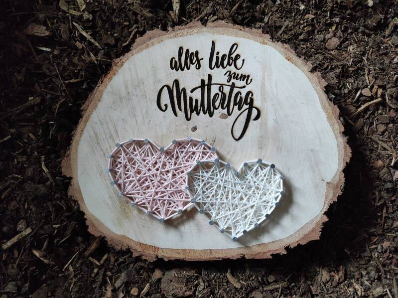 Das Motiv wurde mit Baumwollgarn gefädelt sowie gelasert und kann auch in vielen weiteren Motiven erstellt werden